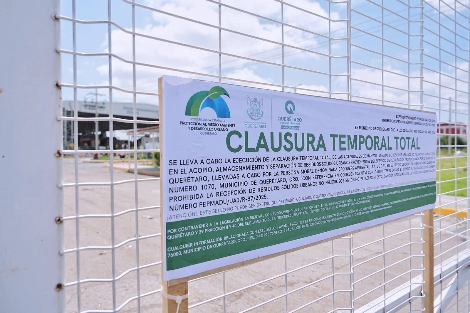 Recordó que esto se debe a que la planta tratadora se clausuró por parte de la Procuraduría Estatal de Protección al Medio Ambiente (Pepmadu) desde el pasado 23 de julio a dicha empresa por diversos incumplimientos de la normativa medioambiental.