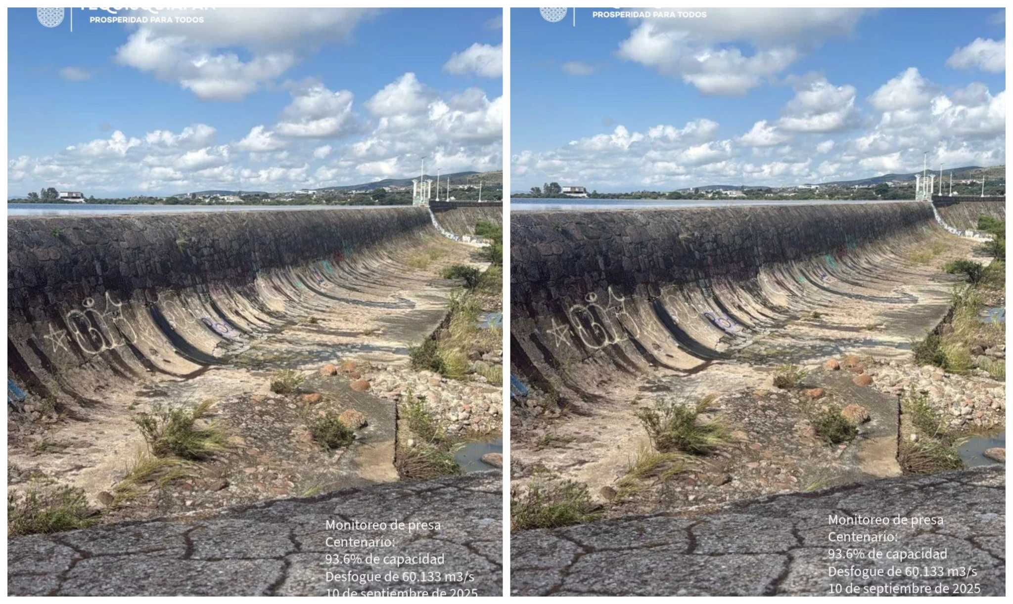 Sin presentar riesgo de desbordamiento ni afectaciones, la Presa Centenario se mantiene estable al corte del 10 de septiembre, con flujo vehicular y peatonal normal en las inmediaciones. Hugo Arena, director de Protección Civil de Tequisquiapan, señaló que se emitió una alerta preventiva ante la expectativa de recibir una gran cantidad de agua proveniente del Estado de México y del río San Juan; sin embargo, el volumen finalmente recibido fue menor al esperado.