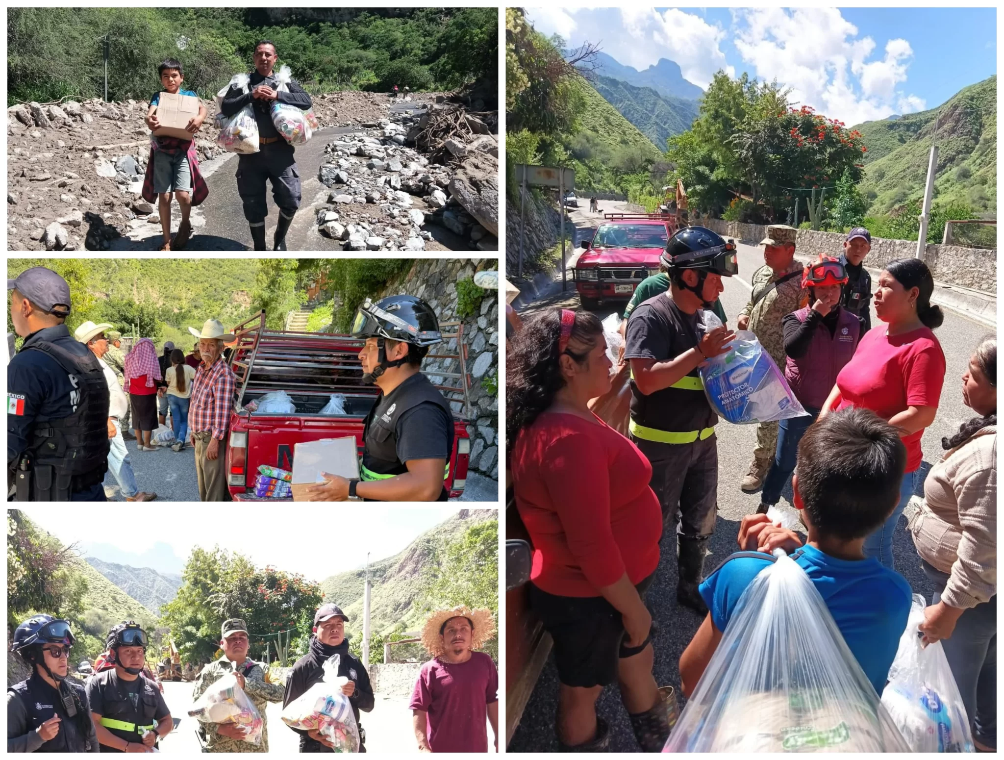 Entrega de despensas, monitoreo en zonas de riesgo y limpieza de caminos son algunas de las acciones que continúan implementando las autoridades de Protección Civil municipal y estatal, tras las afectaciones provocadas por las lluvias en las vialidades de acceso en la zona norte del municipio de Cadereyta de Montes.