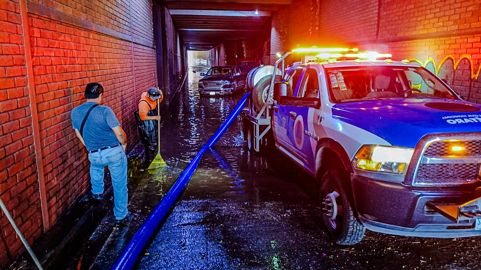 El gobierno capitalino implementó un operativo especial de atención que incluyó la movilización de brigadas de servicios públicos, con acciones como la succión de 400 mil litros de agua en domicilios de colonias como El Sol, La Piedad y Santa María Magdalena, la limpieza de rejillas pluviales, de las que se retiraron 500 kilogramos de basura, el retiro de tres árboles caídos y el monitoreo continuo de los 33 cárcamos municipales, que operaron durante toda la jornada, aunque algunos fueron rebasados por la cantidad de agua acumulada.