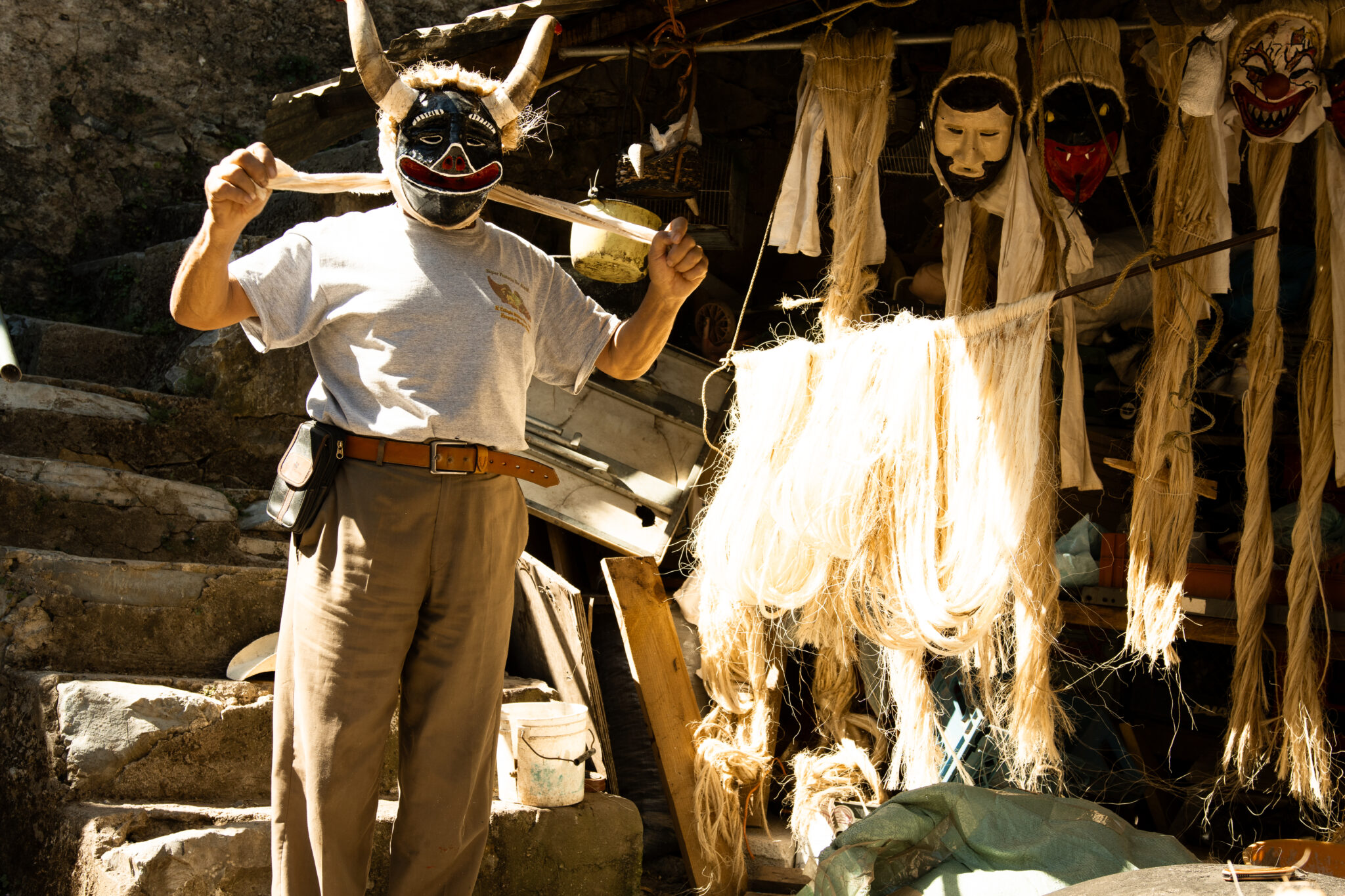 José Manuel explicó que para fabricar las máscaras se utiliza barro extraído de un sitio llamado La Crucita, dentro de la misma comunidad. Este barro se remoja para eliminar impurezas y se usa como molde. Una vez seco, se forra con varias capas de tela para dar forma a la máscara. Después se deja secar nuevamente, se retira el barro del interior y se pinta la pieza al gusto. Finalmente, se elabora y adhiere la cabellera hecha con ixtle, un material que se trae desde Villa Progreso, en el municipio de Ezequiel Montes.