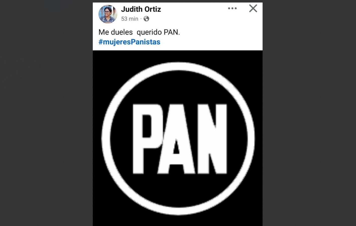 Con un mensaje de «Me dueles PAN» en redes sociales, la exdirigente de este organismo político en San Juan del Río, Judith Ortiz Monroy, expresó su sentir debido a la situación interna que atraviesa el partido, y a que los procesos no se estén conduciendo con apertura hacia la militancia del mismo.