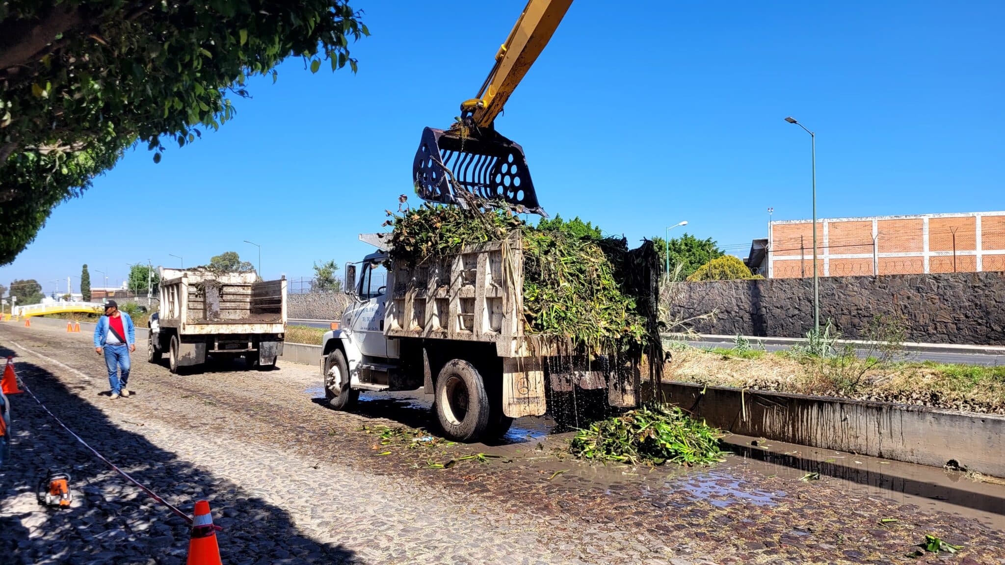 Como parte de las acciones que se ejercerán para prevenir los riesgos por lluvias en San Juan del Río, se encuentra la limpieza de lirio en el canal de Santa Clara, trabajo que realiza la Secretaría de Obras Públicas y Desarrollo Urbano Municipal en conjunto con la Comisión Nacional del Agua (Conagua).