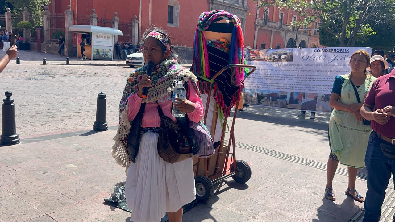 Se confrontaron comerciantes establecidos y artesanos indígenas en el Centro Histórico de Querétaro, luego de una rueda de prensa realizada por vecinos e integrantes del comercio formal en el primer cuadro de la ciudad, donde solicitaban que no se permitiera el ambulantaje, así como que hubiera condiciones similares para comerciantes formales e informales.